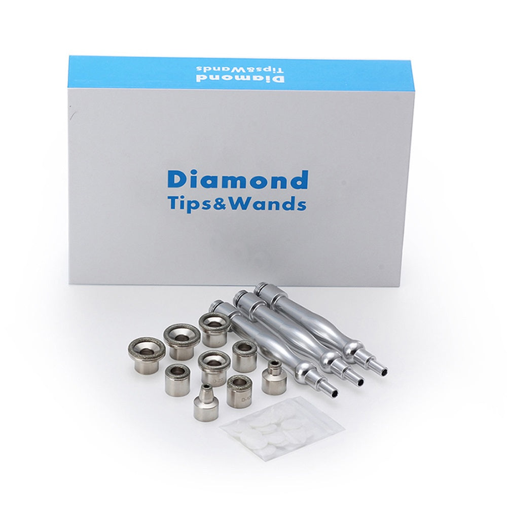 عدة رؤوس ألماسية لاستبدال جهاز الميكرو ديرمابرازيون – طقم 3 عصي + 9 رؤوس جلدية لتقشير البشرة والصالونات